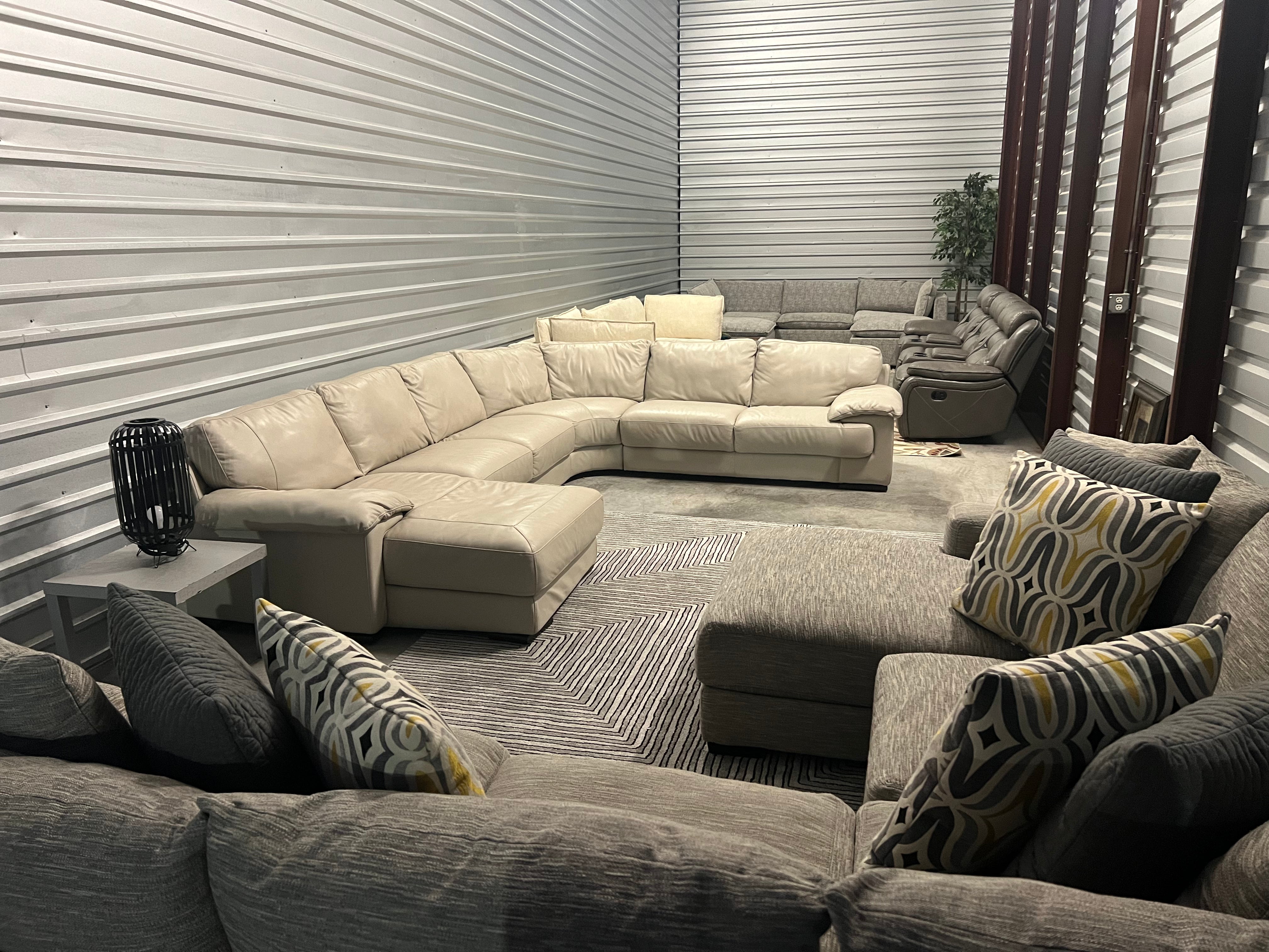 Shown is the first acquired storage unit dedicated to storing used couches. Although it wasn't initially filled with the best couches, it marked the beginning of a rapidly growing operation. Soon, they were consistently managing 50-60 sectionals across multiple storage units, which combined totaled approximately 2,200 square feet. As their side hustle evolved into a full-time endeavor, Christian and Chase officially established Select Living Furniture on March 21, 2022.